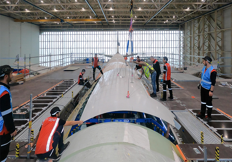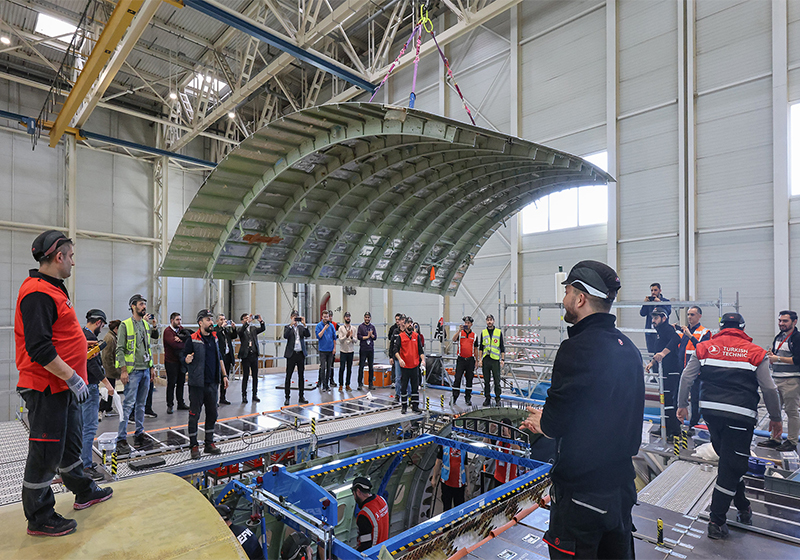 As the first MRO company to operate as a conversion house directly collaborating with EFW for A330P2F, Turkish Technic has recently achieved a key milestone by performing the Upper Frame Shell (UFS) cut-out and successfully locating the new UFS, which is a key step for the installation of the main deck cargo door. The first conversion is part of a series of P2F conversion projects, and it is planned to be completed by the middle of 2024.